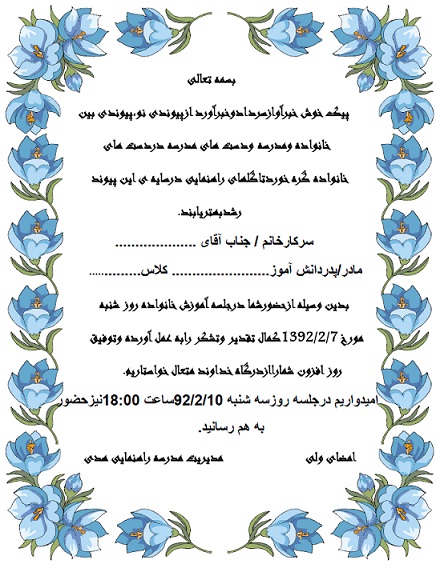 ادامه این جلسه در روز سه شنبه 10 اردیبهشت ساعت 18 در سالن اجتماعات مدرسه برگزار خواهد گردید.